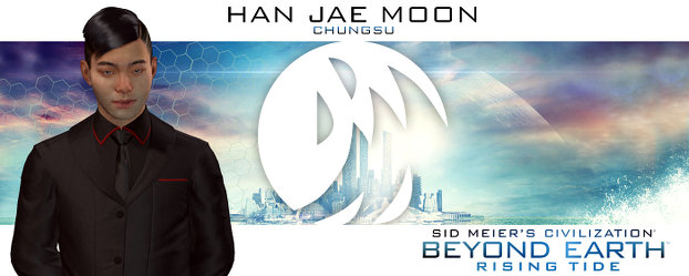 25. September: Für die Erweiterung CivBE - Rising Tide [CivBERT], die am 9. Oktober zu Civ Beyond Earth erscheinen wird, wurde auf der Civ-Homepage das Profil der letzten unbekannten neuen Fraktion veröffentlicht. Es handelt sich dabei um das CHUNSU-Direktorium mit dem männlichen Oberhaupt Han Jae Moon. Offenbar handelt es sich um eine nationalistisch und ideologisch streng nach Parteibuch ausgerichtete Fraktion, die nicht von ungefähr an das heutige China angelehnt sein dürfte. Bemerkenswert ist die Grafik des neuen Oberhaupts, siehe auch einen Screenshot aus Korea. Mit dieser fotorealistischen Grafikqualität ist die Ära der einstmals geliebten/gehassten Civilization-Comicfiguren wohl endgültig beendet.